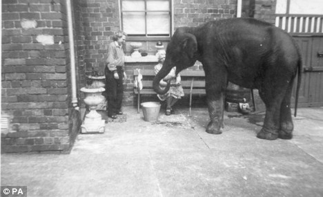 一名女性養(yǎng)象人當(dāng)時(shí)將其藏身于自家后院中飼養(yǎng)長(zhǎng)達(dá)數(shù)月,直到轟炸結(jié)束。人們此后稱(chēng)這名當(dāng)年還是姑娘的女子為“大象天使”。