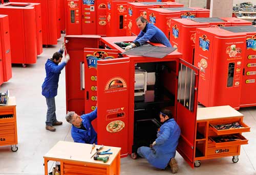 中新網3月27日電 據新加坡《聯合早報》報道,意大利一名企業(yè)家發(fā)明了比薩自動販賣機,人們只需付區(qū)區(qū)4.5美元,就能在3分鐘內吃到熱騰騰的新鮮意大利比薩。