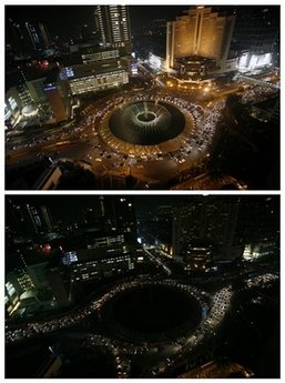 熄燈活動由世界自然保護(hù)基金(WWF)于去年在全球發(fā)起。隨著人們對全球變暖問題關(guān)注程度的提高,今年參加熄燈活動的城市數(shù)量是去年的7倍。