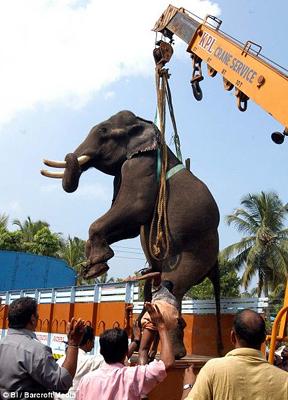 據(jù)英國《每日郵報》4月1日的報道,周二,印度喀拉拉邦一頭公象在交通繁忙的公路上被一輛卡車撞到,兩條后腿骨折和背部受傷,獸醫(yī)不得不動用起重機來搬運這個“龐然大物”。據(jù)報道,這頭大象高9英尺(約2.7米),重達6噸,剛剛從附近的一家印度教寺廟逃出。在事發(fā)現(xiàn)場,數(shù)百名觀眾正在觀看獸醫(yī)如何救治受傷的大象和如何將它搬離現(xiàn)場。一名獸醫(yī)表示,這頭大象體型龐大,情緒極不穩(wěn)定。不過,它此前一直生活在附近人來人往的寺廟,所以對人并不十分恐懼。在對大象做過全面評估后,他們決定從附近的建筑工地上征用一輛起重機,將這頭大象吊到卡車上,將它運往一家獸醫(yī)醫(yī)院。據(jù)悉,搬運工作進展得十分順利。不過,令人可悲的是,盡管獸醫(yī)在努力救治這頭大象,但由于它的傷勢過于嚴重,于當天晚間死去。