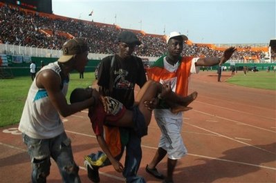 科特迪瓦內(nèi)政部長塔戈羅表示,在科特迪瓦隊主場對陣馬拉維隊的比賽開始前,球迷互相推搡,最后爆發(fā)騷亂,發(fā)生踩踏事件。塔戈羅稱:“因為比賽即將開始,球迷們爭搶著入場,每個人都想進(jìn)去(導(dǎo)致事故發(fā)生)!