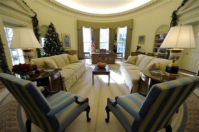 雖然每一位新上任的總統(tǒng)都喜歡將總統(tǒng)辦公室裝飾成自己喜歡的樣子,但是奧巴馬在上任后卻反對(duì)在這里大動(dòng)干戈,他認(rèn)為在金融危機(jī)的狀況下這樣做是在向美國(guó)人民發(fā)出錯(cuò)誤的信號(hào)。但在他執(zhí)政一年之后,這里也開(kāi)始融入了些這位新總統(tǒng)的品位。