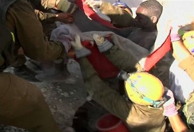 中新網(wǎng)1月23日電 綜合外電報(bào)道,海地再次上演生命奇跡,一名老年女性與一名年輕男性,在海地地震廢墟中被埋長達(dá)10天后,于22日被成功救出。