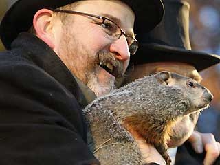 中新網(wǎng)2月3日電 據(jù)美國(guó)媒體報(bào)道,當(dāng)?shù)貢r(shí)間2日,美國(guó)最著名的土撥鼠“菲爾”(Punxsutawney Phil)再次現(xiàn)身賓夕法尼亞州寒冷的天氣中,在眾多民眾的期待中,它“看到”了自己的影子,而這意味著寒冬仍將持續(xù)六周。