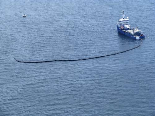 中新網(wǎng)4月26日電 綜合消息,美國(guó)墨西哥灣“深海地平線”鉆油臺(tái)上周初爆炸沉沒(méi),油井上周四開(kāi)始爆裂漏油,估計(jì)每天有4.2萬(wàn)加侖石油從鉆油臺(tái)的豎管及油管漏出,油污面積直徑達(dá)32公里,嚴(yán)重威脅路易斯安那州脆弱的生態(tài)系統(tǒng),F(xiàn)場(chǎng)海面卷起巨浪,清理油污工作暫停。