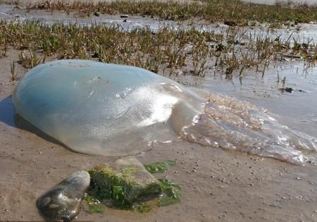 這種水母的學(xué)名稱(chēng)為Rhizostoma octopus,因?yàn)樗?條大觸須,通常生活在英國(guó)海岸附近,被海流和海風(fēng)吹上岸邊。