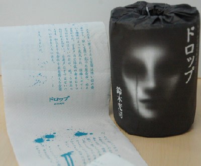 這篇印在衛(wèi)生紙上的恐怖小說為鈴木光司的新作《Drop》,共9章,內容恰好是發(fā)生在公共廁所里的故事。為配合人們通常每次如廁用紙約80厘米的使用量,在80厘米長的衛(wèi)生紙內印有差不多2000字,正好可在幾分鐘內讀完。