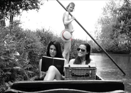 在7月號的掛歷上,是3名女學(xué)生早晨在法國中部的謝爾河里一絲不掛地劃船。