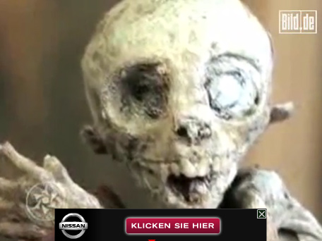明星主持人、同時(shí)也是一位飛碟專家的茂森在其節(jié)目中指著已經(jīng)被制成標(biāo)本的外星人寶寶的照片,興奮地說:“我敢肯定這些照片都是真的!”
