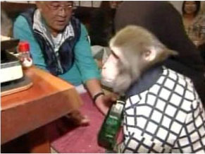 據(jù)臺(tái)灣“今日新聞”報(bào)道,日本古色古香的居酒屋,除了滿(mǎn)滿(mǎn)的人潮外,這里的服務(wù)生也是店里一大特色。老板飼養(yǎng)的猴子轉(zhuǎn)身一變成為店內(nèi)招牌服務(wù)生,讓民眾用餐感覺(jué)大不同。小猴子穿上跟員工一樣的格子制服,拎著酒瓶幫客人倒酒,意外受到顧客歡迎,還有民眾表示,“小猴子有些動(dòng)作,甚至做得比人還好!”使得居酒屋的業(yè)績(jī)暴增2成以上。