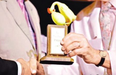 難得的是,雖然乍看之下得獎似乎并不光彩,主辦單位也表示如果得獎人覺得受辱,他們會撤銷提名。但事實上多數(shù)獲獎?wù)叨己芨吲d,主辦方還會請來諾貝爾獎得主擔任評委。比如去年諾貝爾經(jīng)濟獎得主克魯格曼這次就獲邀出席。