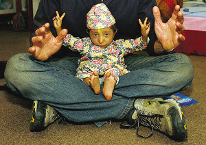 卡根德拉出生時(shí)只有600克重。現(xiàn)在,他也只有4.5公斤重,身高也只有約61厘米。他的母親塔納說,他剛生下來(lái)時(shí)“就像一只剛從蛋殼里孵出來(lái)的小雞!笨ǜ吕母赣H魯普說,兒子和家人吃一樣的食物,但就是長(zhǎng)不大,“直到8歲時(shí)才能獨(dú)立行走”。去年,家人發(fā)現(xiàn)卡根德拉停止長(zhǎng)個(gè)兒。醫(yī)生至今無(wú)法對(duì)卡根德拉無(wú)法長(zhǎng)大的原因給出解釋,但猜測(cè)這可能與腦垂體機(jī)能失常有關(guān)。