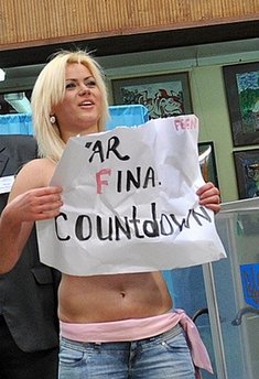 這4名女子在零下低溫中裸露上身,關鍵部位用膠條粘住防止走光。不過,即使如此,選監(jiān)官員還是被她們突如其來的舉動弄得面紅耳赤。她們拉開寫著“別再強奸我們的國家”的橫幅,高喊口號,進行抗議。她們稱呼吁選民“不要出賣選票”。
