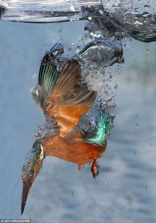 翠鳥的俯沖速度每小時達(dá)40公里,能捕捉到水下60厘米處的魚,通常只能看到一個藍(lán)點(diǎn)一閃,它們就鉆進(jìn)了水里。由于翠鳥的眼睛能迅速調(diào)整水中光線所造成的視角反差,因此翠鳥捕魚幾乎是百發(fā)百中。