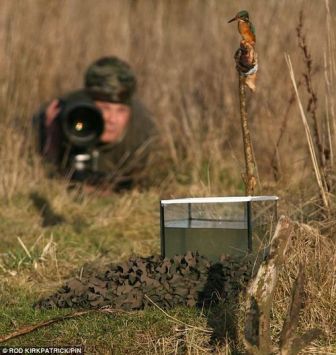 由于翠鳥的速度驚人、動作靈巧,而且水中的光線較不足,一般來說,要拍攝翠鳥捕魚的照片一點(diǎn)也不簡單。幸好聰明的業(yè)余攝影師艾德里‧安格羅夫斯懂得略施小計(jì),在水池邊放了一個玻璃缸,里面放入幾條鯫魚,設(shè)法引誘翠鳥獵食,再伺機(jī)拍攝翠鳥捕魚的精彩瞬間。