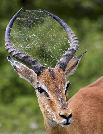 所羅門(mén)說(shuō),羚羊肯定是在公園里游逛時(shí),無(wú)意之中兩角掛到了懸在某處的蜘蛛網(wǎng),并將網(wǎng)和蜘蛛一同載走,一直掛在角上。
