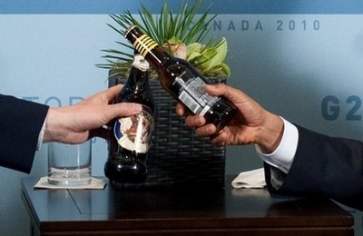 中新網(wǎng)6月27日電 據(jù)臺灣中廣新聞網(wǎng)報(bào)道,美國總統(tǒng)奧巴馬及英國首相卡梅倫周末趁著在加拿大多倫多出席高峰會時(shí),履行賭約,互請啤酒。