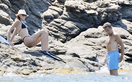 媒體拍到他們在海邊游泳的照片。這位注重身材的法國總統(tǒng)站在水中盡力收腹,健康問題看似已無大礙。布呂尼則戴著太陽帽和墨鏡,穿著黑色比基尼,大秀身材。他們并沒有進行激烈的運動,有記者只是看到他們在水中互相親吻。