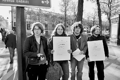 反對(duì)派社會(huì)黨青年團(tuán)不滿讓-薩科齊子憑父貴,4名成員昨日游行前往愛麗舍宮,拉橫幅要求薩科齊收養(yǎng)失業(yè)年輕人。