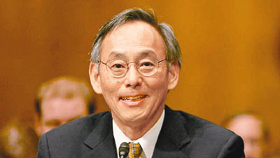 朱棣文現(xiàn)年61歲,祖籍江蘇太倉,1997年因為發(fā)展出用雷射冷卻和捕獲原子的方法,獲得諾貝爾物理學(xué)獎,2004年出任勞倫斯柏克萊國家實驗室主任,開始投入潔凈能源科技研究,去年12月被奧巴馬總統(tǒng)提名為能源部部長,今年1月上任。