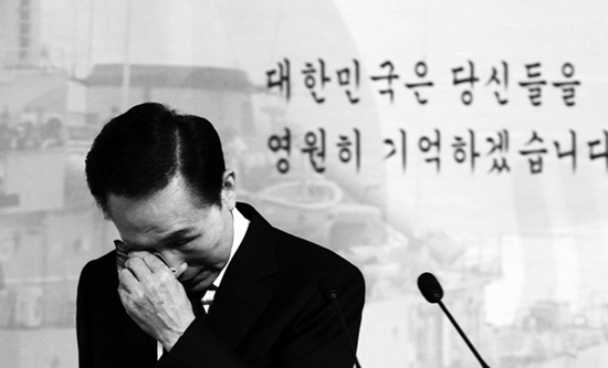 4月19日,韓國總統(tǒng)李明博就上月發(fā)生的“天安”號(hào)沉船事件發(fā)表電視講話。時(shí)長10分鐘的講話中,李明博既展現(xiàn)了態(tài)度強(qiáng)硬的一面,也有博人感情的首度落淚。