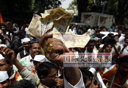 國際先驅導報記者毛嘵嘵發(fā)自新德里 隨著5月16日的票選統(tǒng)計結果宣布,持續(xù)一個月之久的世界最大民主選舉——印度人民院(下院)選舉落下帷幕。截止16日午夜,雖然沒有一個政黨或政黨聯(lián)盟獲得過半席位,但國大黨領導的執(zhí)政的全國民主聯(lián)盟已獲258席,大幅領先僅獲164席的主要對手印人黨領導的反對派聯(lián)盟。至此,國大黨執(zhí)政聯(lián)盟蟬聯(lián)執(zhí)政已成定局,曼莫漢·辛格也將繼任總理一職。
