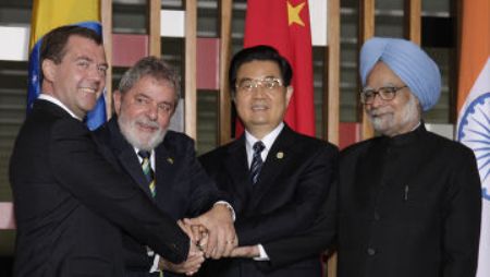 報道稱,巴西、俄羅斯、印度和中國的領(lǐng)導人14日齊聚巴西首都巴西利亞,就改善全球經(jīng)濟和政治形勢,加強相互間的協(xié)作合作展開磋商。