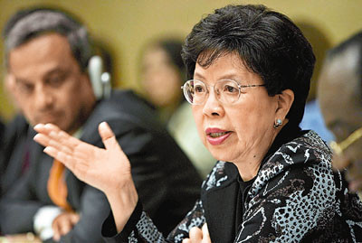 據(jù)香港《文匯報》報道,陳馮富珍在日內瓦的世衛(wèi)年會上說:“當我看見更多來自病毒本身和疾病蔓延的跡象,我必然會作出一個困難的決定,不會危及全球人的健康!