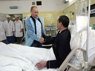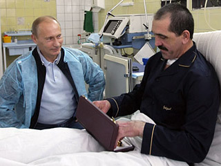 據(jù)俄羅斯新聞網(wǎng)報(bào)道,7月30日俄羅斯總理普京前往莫斯科維什涅夫斯基外科醫(yī)學(xué)研究所探望一個(gè)多月前遇刺后在此療傷的印古什自治共和國(guó)總統(tǒng)葉夫庫(kù)羅夫,并且贈(zèng)送一把短劍祝賀當(dāng)日滿46周歲的他生日快樂(lè)。