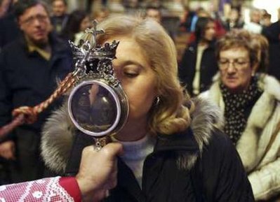 上周,一名51歲的男子因感染甲流,在那不勒斯醫(yī)院不治身亡,成為意大利第一例甲流致死病例。由此,周一,天主教那不勒斯教會(huì)與城市當(dāng)局共同決定,為預(yù)防甲流病毒大規(guī)模傳播,將禁止信徒在本月晚些時(shí)候開始的宗教節(jié)日上親吻裝有圣人血液的玻璃小瓶。從9月19日開始,這樽裝有天主教圣人圣亞努阿里烏斯血液的玻璃瓶將在那不勒斯市的主教座堂展出一周,展覽期間,無論前來膜拜的信徒有多么虔誠,也不能用嘴親吻瓶子,只能用額頭輕觸瓶子。
