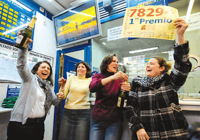主辦單位表示,有1950張彩票出現(xiàn)中獎號碼,全部都是在馬德里巿中心彩票辦事處出售。按總彩金23.2億歐元計算,每位得獎持票人可獲30萬歐元獎金。
