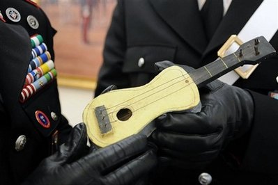 警方稱,這位商人洗清了自己被指欺詐的罪名。而這把珍貴的小吉他也會如預(yù)期所定,送到馬卡尼歐(Maccagno)的當代藝術(shù)博物館珍藏。這個博物館位于意大利北部,靠近帕里西的故鄉(xiāng)。
