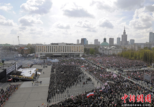 多達數(shù)十萬人聚集在波蘭首都華沙皮蘇特斯基廣場,為96名遇難者送上最后的祝福和思念之情,與他們“道別”。