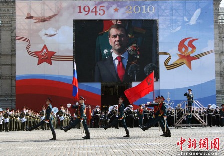 據(jù)報道,莫斯科時間5月9日上午10點(北京時間9日下午2點),俄羅斯在莫斯科紅場舉行盛大的閱兵式,慶祝衛(wèi)國戰(zhàn)爭勝利65周年。