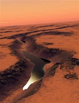 據(jù)報(bào)道,美國(guó)科學(xué)家認(rèn)為火星上的這個(gè)湖泊形成于34億年前,總面積達(dá)207平方公里,最深處達(dá)500米。但是目前還不清楚湖泊為何會(huì)消失。