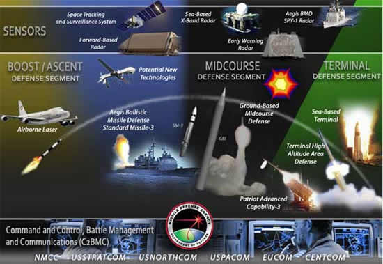 美國彈道導(dǎo)彈防御系統(tǒng)包含衛(wèi)星定位偵察系統(tǒng)、前沿部署雷達、X波;走_、早期預(yù)警雷達、宙斯盾雷達系統(tǒng)的預(yù)警探測系統(tǒng)、空基激光反導(dǎo)武器、宙斯盾平臺搭載的“標準-3”導(dǎo)彈、無人機等新型武器、陸基中段彈道導(dǎo)彈防御系統(tǒng)、;K端防御武器、“愛國者-3”導(dǎo)彈、終端高空區(qū)域防御導(dǎo)彈系統(tǒng)等武器系統(tǒng)和指揮、控制、戰(zhàn)場管理和通訊系統(tǒng)。