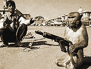 據(jù)英國(guó)媒體27日?qǐng)?bào)道,阿富汗的塔利班軍閥們竟想出了一種匪夷所思的方法來(lái)對(duì)付駐阿盟軍:他們竟將一些愛(ài)吃香蕉和花生的猴子訓(xùn)練成了“致命殺手”,教會(huì)了這些猴子如何使用卡拉什尼科夫沖鋒槍、布倫式輕機(jī)槍甚至迫擊炮,并教它們?nèi)绾螌?zhuān)門(mén)向穿美軍服裝的士兵發(fā)起襲擊。頗具諷刺意味的是,“訓(xùn)練猴子當(dāng)殺手”的主意最早卻是由美國(guó)中情局發(fā)明出來(lái)的,美國(guó)中情局曾在越戰(zhàn)中發(fā)起“香蕉行動(dòng)”,專(zhuān)門(mén)用花生和香蕉當(dāng)獎(jiǎng)品,訓(xùn)練一些“猴子士兵”在叢林中獵殺越南士兵。