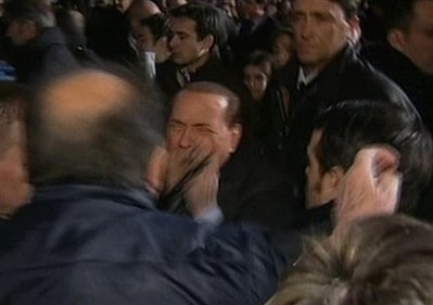 據(jù)香港《文匯報(bào)》報(bào)道,事發(fā)于13日晚6時(shí)半左右,老貝剛于米蘭大教堂附近發(fā)表完政治演說,準(zhǔn)備給支持者簽名后離開。在他與助手交談之際,襲擊者突然隔著保鏢向老貝拋擲硬物,老貝立即雙手捂臉,表情痛苦,保鏢馬上制服襲擊者。多家電視臺(tái)正在周圍拍攝,整個(gè)遇襲過程被清晰地拍下來。