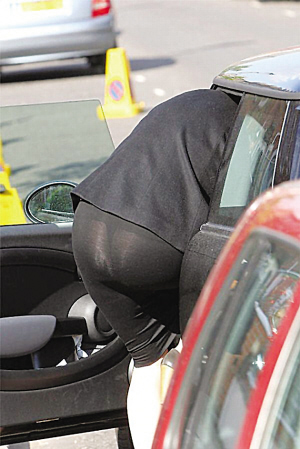 狗仔近身跟拍這位新首相夫人時(shí)發(fā)現(xiàn),當(dāng)天薩曼莎雖然以一身黑色套裝包裹得嚴(yán)嚴(yán)實(shí)實(shí),但她上車時(shí),緊身黑裙在陽光下變得非常透明,還露出里面的黑色丁字褲。目前身懷六甲的薩曼莎并不像普通孕婦那樣穿著保守的內(nèi)衣,讓英國媒體驚嘆她特立獨(dú)行的穿衣品位。