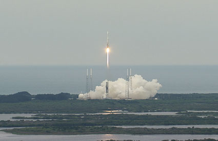 中新網(wǎng)6月19日電 當(dāng)?shù)貢r(shí)間18日下午5時(shí)32分,美國航天局在佛羅里達(dá)州卡納維拉爾角空軍基地發(fā)射一枚“宇宙神-5”運(yùn)載火箭,將“月球勘查軌道號”與“月球隕坑觀測與傳感衛(wèi)星”兩個(gè)月球探測器送上太空。這標(biāo)志著美國“2020年重返月球”計(jì)劃正式啟動(dòng)。