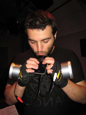 二十名樂(lè)團(tuán)團(tuán)員并不是一班鬧著玩的普通音樂(lè)系學(xué)生,他們都正在修讀一個(gè)名為“手機(jī)樂(lè)團(tuán)”的校內(nèi)課程,學(xué)習(xí)如何把iPhone改造成各種樂(lè)器。有了特定的應(yīng)用程序,加上內(nèi)置的全球定位系統(tǒng)(GPS)、數(shù)碼指南針和加速度計(jì),用家只要用手指敲打屏幕、向擴(kuò)音器吹氣,便可奏樂(lè)。演奏時(shí),iPhone會(huì)連上系在樂(lè)師的手腕上的揚(yáng)聲器。