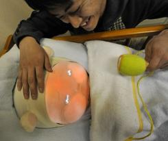 中新網(wǎng)3月10 日電 據(jù)外電10日報(bào)道,日本近日推出一款新型機(jī)器人“嬰兒”。這個(gè)被昵稱為“太郎”的機(jī)器嬰兒在人們輕輕搖擺或者撫摸它時(shí),會發(fā)出咯咯的笑聲,并做出搖手晃腳的可愛姿態(tài),但它也會像真正的嬰兒那樣發(fā)出任性的哭聲。