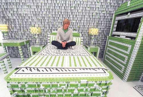 中新網(wǎng)9月19日電 據(jù)香港《大公報(bào)》報(bào)道,因建造出全球最大紙牌建筑物而被列入《吉尼斯世界紀(jì)錄大全》的美國(guó)人布賴恩.伯格在紐約建造了一家“鎖匙卡酒店”,里面除了地板和天花板之外,一切都是由總數(shù)20萬(wàn)張的塑料酒店鎖匙卡建成。