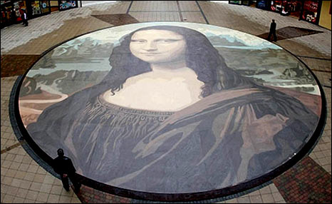 據(jù)英國廣播公司報道,這個全民參與的藝術(shù)作品可謂世界上最大的蒙娜麗莎肖像。該地區(qū)上百名民眾都加入到了這個藝術(shù)項目中來。這幅巨大的乙烯肖像占地面積達240平方米,是掛在巴黎盧浮宮博物館那幅原作的50倍之大,可以容納22輛倫敦的公共汽車。