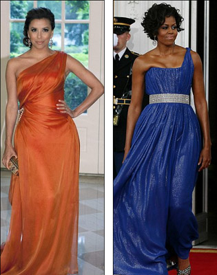 中新網(wǎng)5月20日電 據(jù)外媒報(bào)道,美國(guó)白宮19日舉辦國(guó)宴,款待墨西哥總統(tǒng)卡爾德龍夫婦。此間美國(guó)第一夫人的穿衣打扮再被媒體拿出來(lái)品頭論足。不幸的是,這次米歇爾•奧巴馬竟然與“絕望主婦”伊娃•朗格利亞大撞衫,頗為尷尬!
