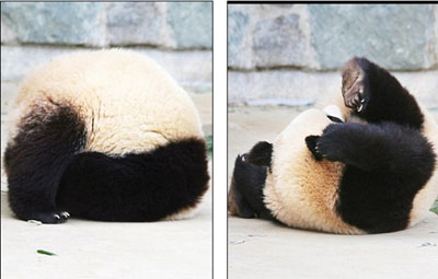 中新網(wǎng)12月23日電 英國媒體公布了幾張旅美大熊貓?zhí)┥降淖钚抡掌,照片中大熊貓(jiān)诜^,動(dòng)作標(biāo)準(zhǔn)十分可愛,然而更令人叫絕的是,這一連串動(dòng)作是泰山在睡夢中完成的。