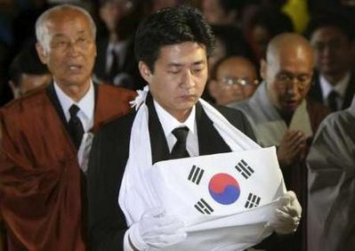 盧武鉉的國民葬遺體告別儀式29日在首爾景福宮舉行。韓國總統(tǒng)李明博、前總統(tǒng)金泳三和金大中、現(xiàn)任、前任政府高級(jí)官員,外國駐韓使節(jié)以及海外吊唁使節(jié)、遺屬以及葬禮委員會(huì)成員等三千多名人士參加了遺體告別儀式。