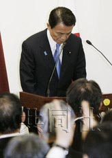 中新網(wǎng)7月21日電 據(jù)日本共同社報(bào)道,日本首相麻生太郎(自民黨總裁)21日上午出席自民黨兩院議員懇談會(huì),就自己的發(fā)言前后不一及執(zhí)政黨在大型地方選舉中連敗表示道歉,稱(chēng)“正在深刻反省”。