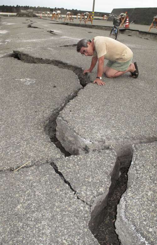 在燒津港的碼頭上,地震后出現(xiàn)了一條300米長的裂痕。燒津港某漁業(yè)合作社的官員說:“這次地震和海嘯預(yù)警實(shí)在令人害怕。今天的事讓我們?yōu)檎嬲拇鬄?zāi)難進(jìn)行演習(xí)!