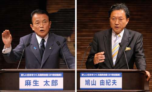 據(jù)日本共同社報(bào)道,麻生表示民主黨的政策是“沒(méi)有財(cái)源的亂花錢(qián),是不負(fù)責(zé)任。不能把日本安全交給一個(gè)在安全保障政策上沒(méi)有一貫性的政黨”,對(duì)民主黨的執(zhí)政能力質(zhì)疑。鳩山則稱(chēng)“執(zhí)政黨的政策是官僚主導(dǎo)制定,把日本變成了一個(gè)官員到民間企業(yè)就職多、浪費(fèi)多的國(guó)家。這是官僚主導(dǎo)的政治打破不了的”,訴說(shuō)政權(quán)更迭的必要性。